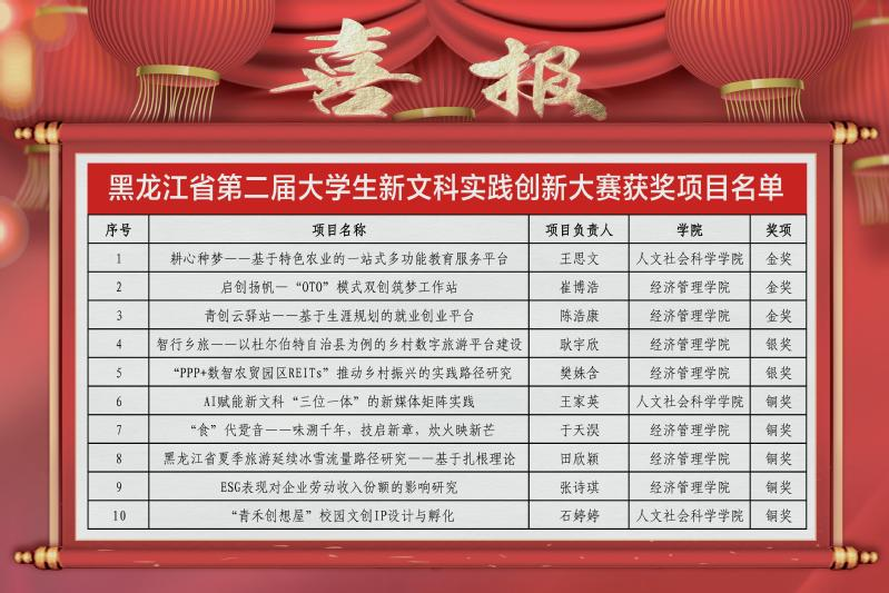 喜报!我校在黑龙江省第二届大学生新文科实践创新大赛喜获3金2银5铜
